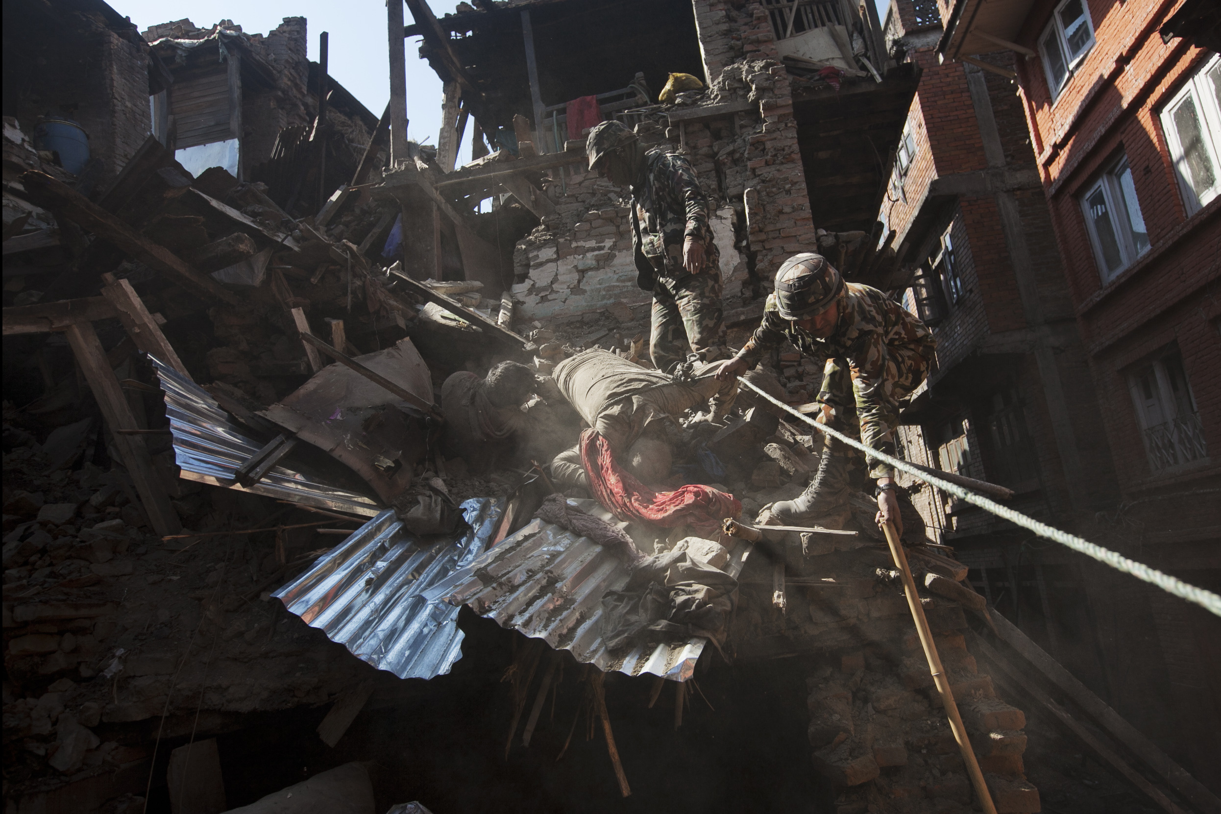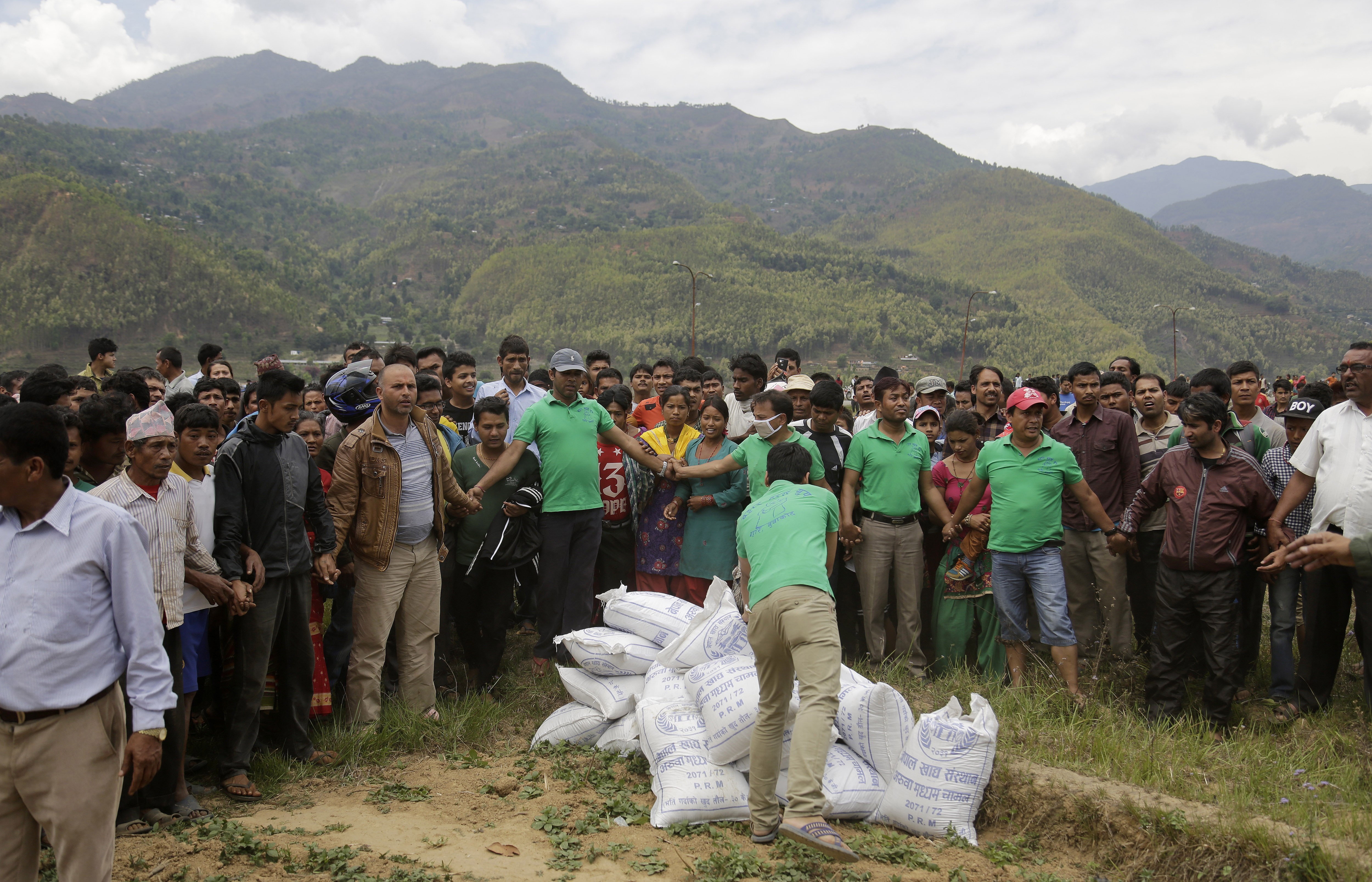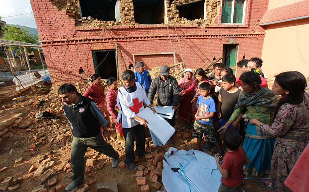 Η διεθνής βοήθεια αρχίζει να φθάνει στο Νεπάλ. Φορτία τροφίμων, ιατροφαρμακευτικού υλικού, σκηνές, κουβέρτες συγκεντρώνονται στο αεροδρόμιο του Κατμαντού, όμως η μεταφορά και η διανομή τους καθυστερεί εξαιτίας της χαώδους κατάστασης, της έλλειψης προσωπικού για τη μεταφορά των προμηθειών, της καταστροφής του οδικού δικτύου, της διακοπής των τηλεπικοινωνιών που καθιστά εξαιρετικά δύσκολο τον συντονισμό των επιχειρήσεων αρωγής.