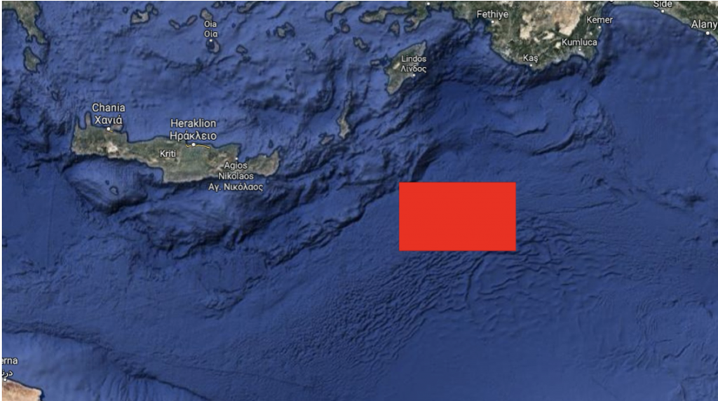 Δείτε την περιοχή στο χάρτη που είναι εντός των θαλασσίων “συνόρων” ΤΟΥΡΚΙΑΣ – ΙΣΛΑΜΙΣΤΩΝ ΤΡΙΠΟΛΗΣ (GNA), βάσει της παράνομης συμφωνίας μεταξύ των δύο πλευρών: