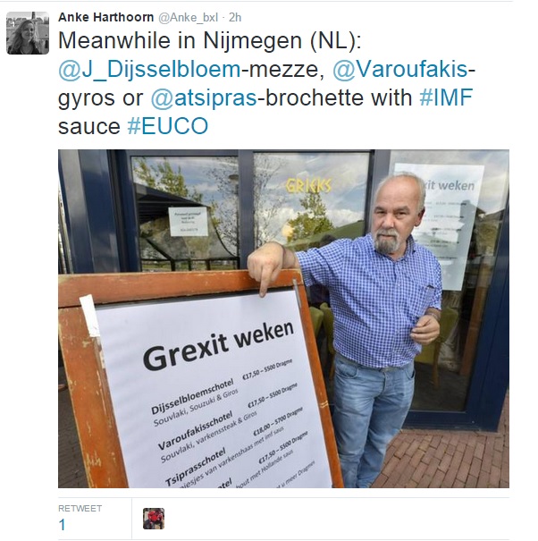 Ελληνική ταβέρνα στην Ολλανδία σερβίρει πιάτο Τσίπρα και Βαρουφάκη με τίτλο «Εβδομάδα Grexit» [εικόνα]