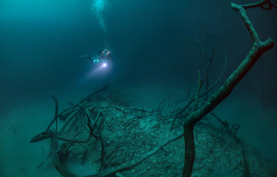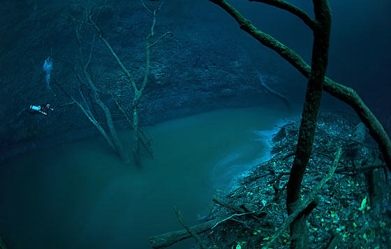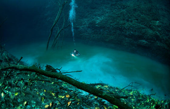 Βουτώντας στη χερσόνησο Γιουκατάν στο Μεξικό, βρήκε ένα υποβρύχιο ποτάμι, κάτι που είναι άκρως εντυπωσιακό.