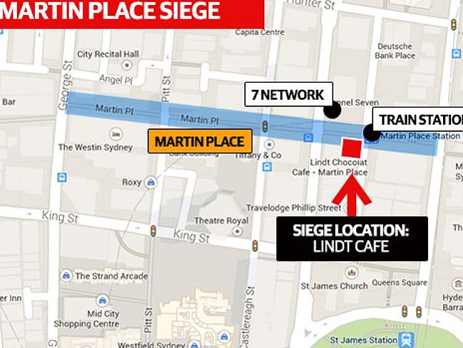 Επίσης, εκκενώθηκαν για προληπτικούς, τα κοντινά γραφεία από το κεαφέ, ενώ από τους πολίτες στην περιοχή γύρω από τον Martin Place, όπου βρίσκεται το καφενείο, ζητήθηκε να παραμείνουν σε εσωτερικούς χώρους και μακριά από τα ανοιχτά παράθυρα.