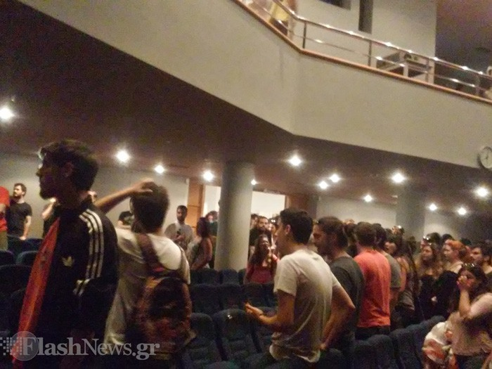 Ομάδα νεαρών διαδηλωτών που είχαν πραγματοποιήσει πορεία διαμαρτυρίας προς το χώρο της εκδήλωσης, αντιδρώντας στην πραγματοποίηση της, κινήθηκαν κατά φοιτητών και άλλων ατόμων που βρίσκονταν στο χώρο, ενώ στη συνέχεια μπήκαν στο εσωτερικό του πνευματικού κέντρου, αναρτώντας εν μέσω έντονων αντεγκλήσεων, πανό στην αίθουσα της εκδήλωσης, η οποία τελικά αναβλήθηκε.