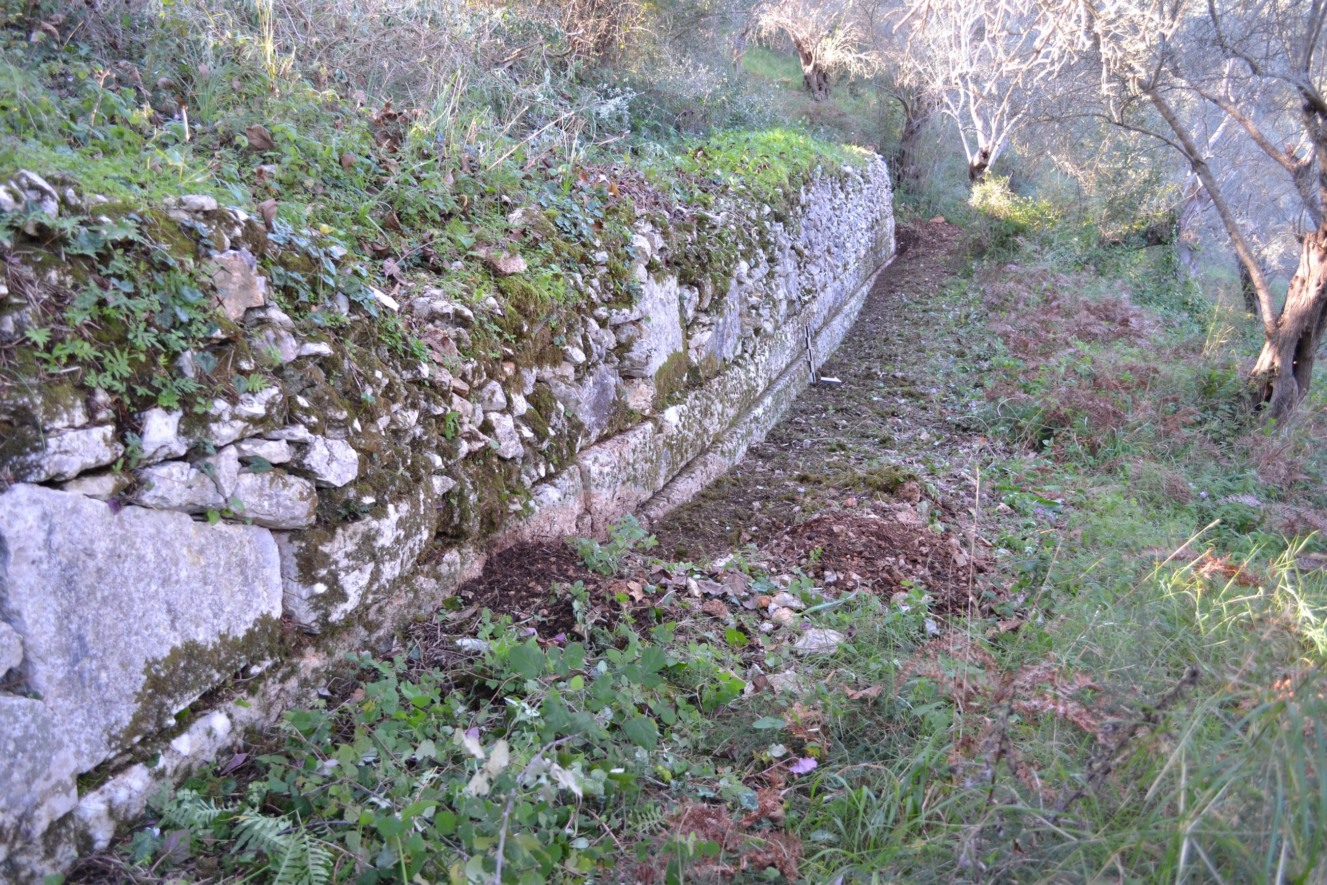 Ο αναλημματικός τοίχος εντοπίστηκε σε μήκος 25 μ. και ύψος έως 0,75 μ.