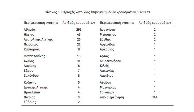 Δείτε στον παρακάτω πίνακα τις περιφερειακές ενότητες της Ελλάδας στις οποίες έχουν ανιχνευθεί επιβεβαιωμένα κρούσματα κορονοϊού.