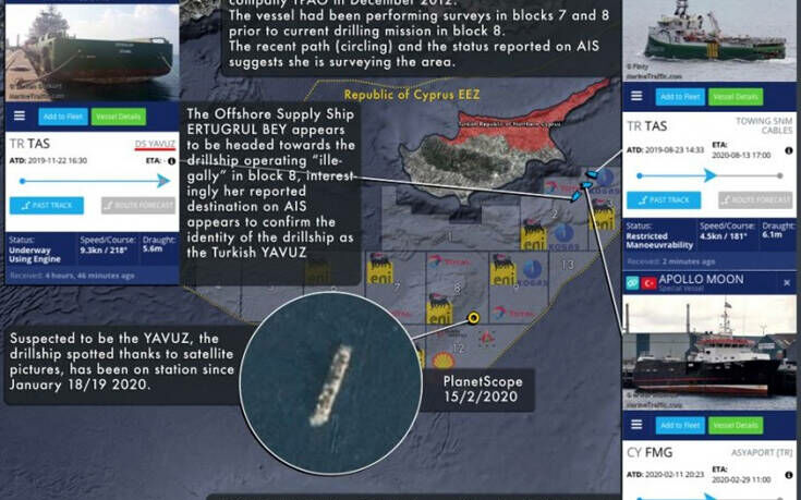 Αυτό επιβεβαιώνεται έμμεσα και από δορυφορικούς χάρτες που κυκλοφορούν στο διαδίκτυο που δείχνουν το Γιαβούζ στις 15 Φεβρουαρίου στο τεμάχιο 8 της κυπριακής ΑΟΖ. Παράλληλα στον ίδιο δορυφορικό χάρτη διακρίνεται το Μπαρμπαρός και τα υποστηρικτικά πλοία ερευνών Apollon Moon και Ertugul Bay στο τεμάχιο 2 της ΑΟΖ.