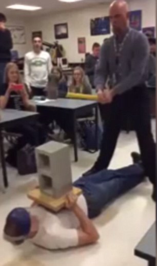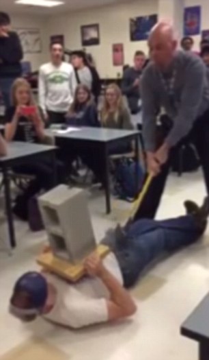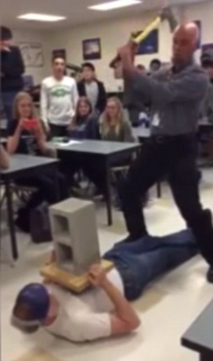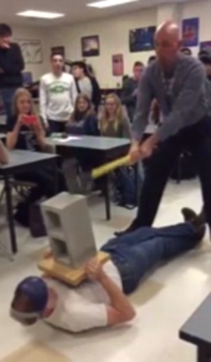 Συγκεκριμένα, στο ερασιτεχνικό βίντεο από κάμερα κινητού τηλεφώνου, που αναρτήθηκε στο Youtube με τον τίτλο «Πώς ο καθηγητής φυσικής έχασε τη δουλειά του», διακρίνεται στο πάτωμα της αίθουσας να είναι πεσμένος ένας μαθητής με έναν τσιμεντόλιθο στο στήθος. Τότε, ο καθηγητής αφού πρώτα ρωτήσει την τάξη του: «Όλοι έτοιμοι;», παίρνει ένα τσεκούρι και με την πίσω του πλευρά επιχειρεί να σπάσει τον τσιμεντόλιθο.