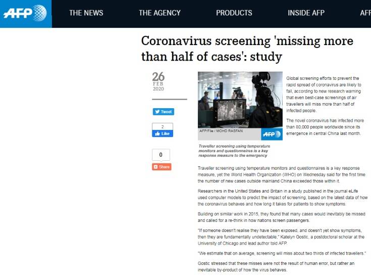 Όπως ανέφερε η Κατελίν Γκόστιτς, του πανεπιστημίου του Σικάγο, στο γαλλικό πρακτορείο ειδήσεων: «Αν κάποιος δεν έχει καταλάβει ότι έχει εκτεθεί στον ιό και δεν εμφανίσει τα συμπτώματα, τότε δεν θα μπορέσει να ανιχνευτεί. Εκτιμούμε ότι κατά μέσο όρο ξεφύγουν από τους ελέγχους τα 2/3 των μολυσμένων ταξιδιωτών».