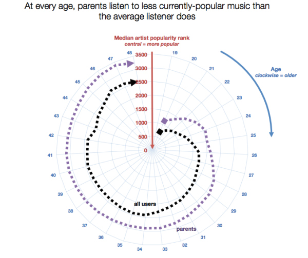 Το Spotify, η μουσική υπηρεσία streaming η οποία επιτρέπει στους χρήστες του να έχουν πρόσβαση σε παραπάνω από 20 εκατομμύρια τραγούδια, μελέτησε τι μουσική ακούν οι άνθρωποι ανάλογα με την ηλικία τους. Αναλύοντας τα δεδομένα διαπιστώθηκε ότι υπάρχει μια συγκεκριμένη ηλικία όπου οι μεσήλικες σταματούν να ακούν τα σοφιστικέ ακούσματα και τις επιτυχίες των δεκαετιών 80′ και 90′ και τελείως αυθόρμητα εμπλουτίζουν τη δισκοθήκη τους με ποπ τραγούδια.