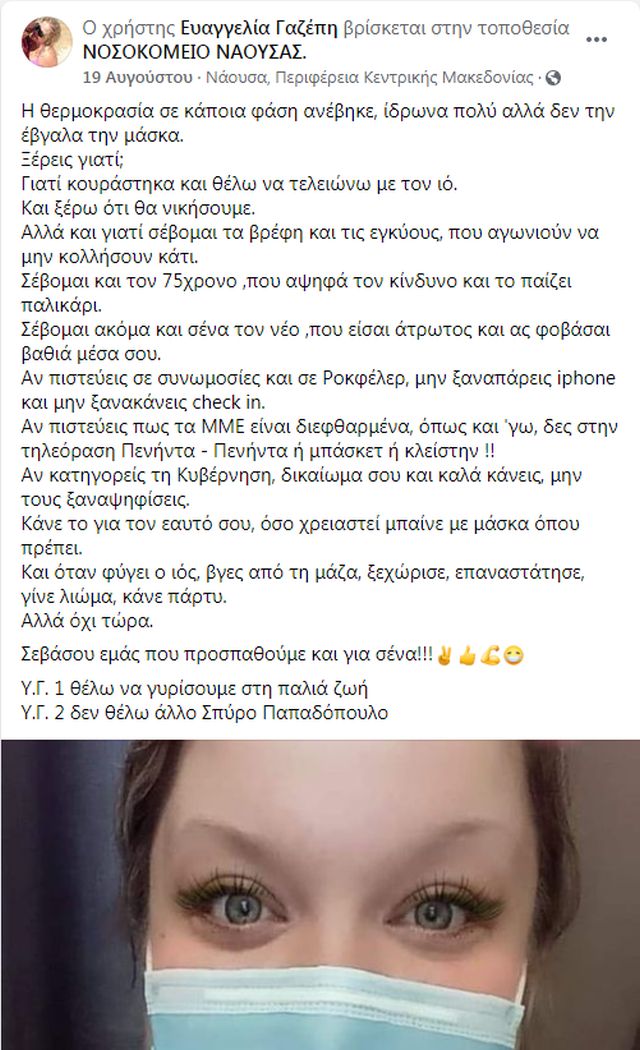 Η Ευαγγελία Γαζέπη είχε απευθύνει στις 19 Αυγούστου την ακόλουθη δραματική έκκληση από τη σελίδα της στο Facebook:
