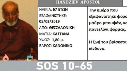 Αγωνία επικρατεί για την τύχη του Handziev Apostol που εξαφανίστηκε στις 5 Μαρτίου από το νοσοκομείο «Παπανικολάου» στη Θεσσαλονίκη.