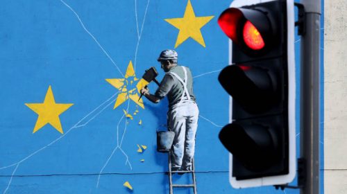 Το γνωστό έργο του Banksy που συμβολίζει το Brexit και απεικονίζει έναν εργάτη να αποξηλώνει ένα αστέρι από την σημαία της Ευρωπαϊκής Ένωσης εξαφανίσθηκε από τον τοίχο του κτιρίου όπου βρισκόταν από το 2017 στο Ντόβερ.