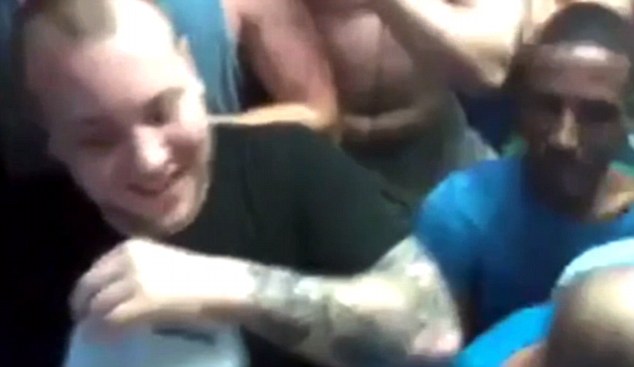 Στιγμιότυπα από τη γιορτή – που φέρεται να είναι ένα πάρτι γενεθλίων – δείχνει τους κατάδικους να πίνουν αλκοόλ από ένα πλαστικό δοχείο, να χορεύουν ημίγυμνοι στο στενό κελί και να καπνίζουν ναρκωτικά.