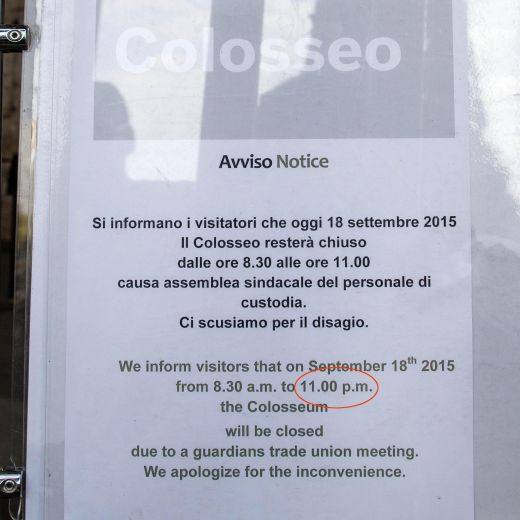 Τόνισαν ότι η απόφασή τους να αναστείλουν τη λειτουργία του μνημείου είναι δικαίωμά τους, ενώ έξω από το Κολοσσαίο επικρατούσε πλήρης σύγχυση, καθώς είχαν αναρτηθεί πινακίδες στα αγγλικά που ενημέρωναν τους τουρίστες πως το μνημείο θα άνοιγε στις 11 μ.μ. αντί για τις 11 π.μ., όπως συνέβη τελικά.