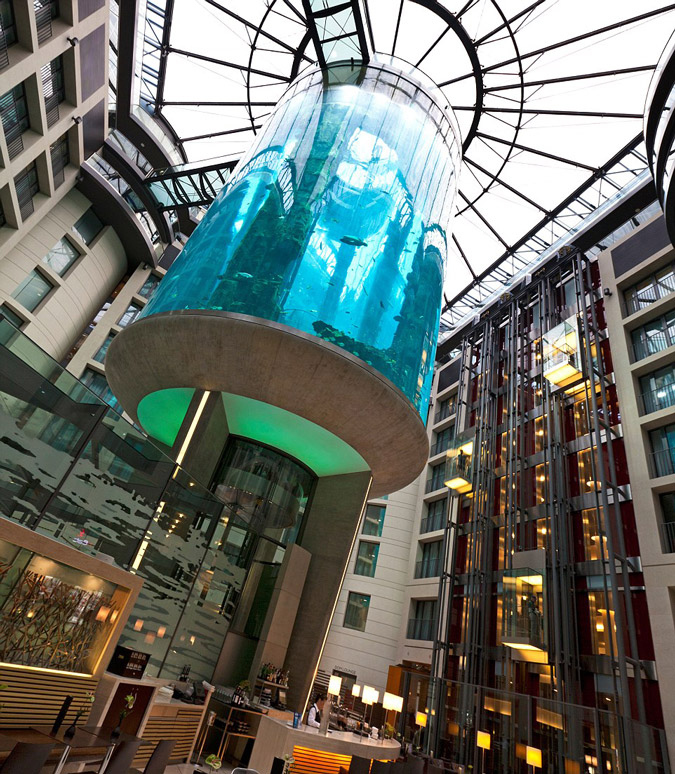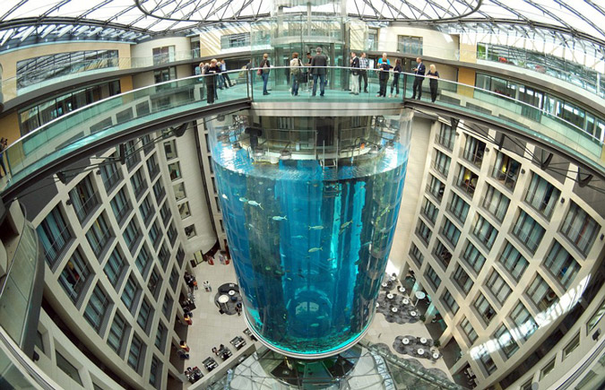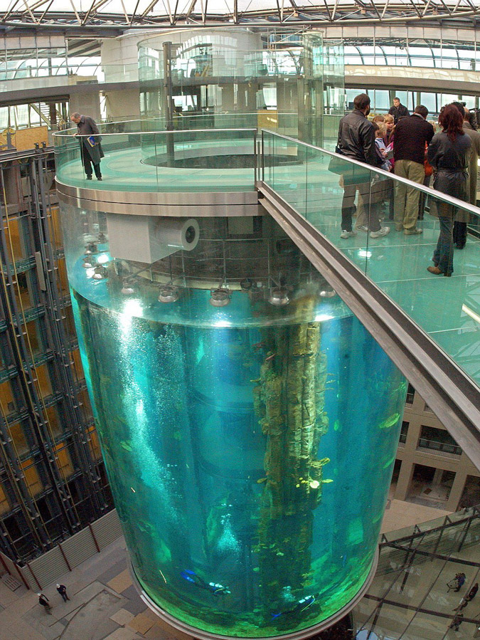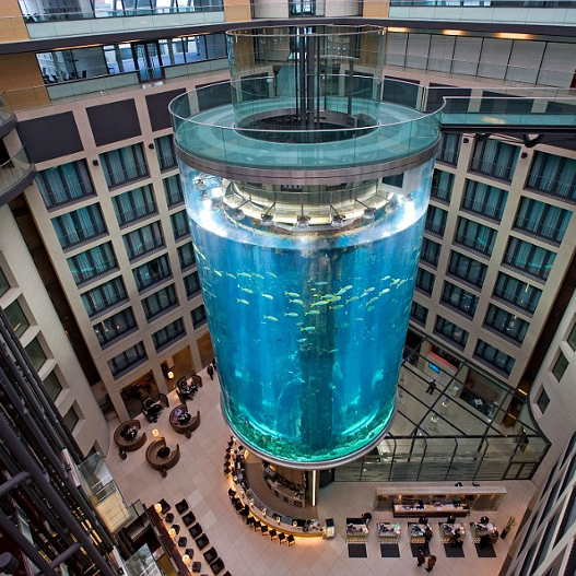 Φιλοξενεί 1.500 ψάρια από 97 διαφορετικά ήδη. Εχει ύψος 24 μέτρα και είναι το μεγαλύτερο κυλινδρικό ενυδρείο στον κόσμο λέγεται AquaDom και βρίσκεται στο Βερολίνο.