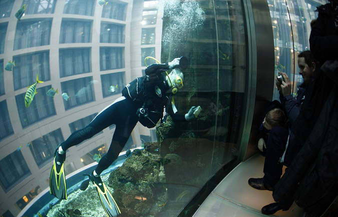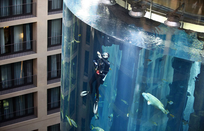 Το Radissson Blu Hotel είναι το ξενοδοχείο που φιλοξενεί το εκπληκτικής κατασκευής ενυδρείο που κόστισε ούτε λίγο ούτε πολύ 12.800.000 ευρώ.