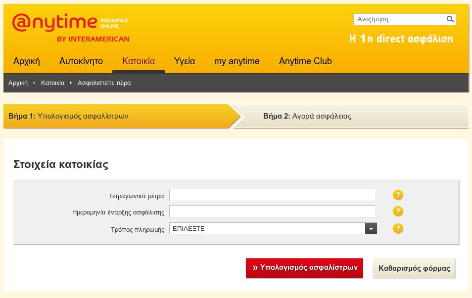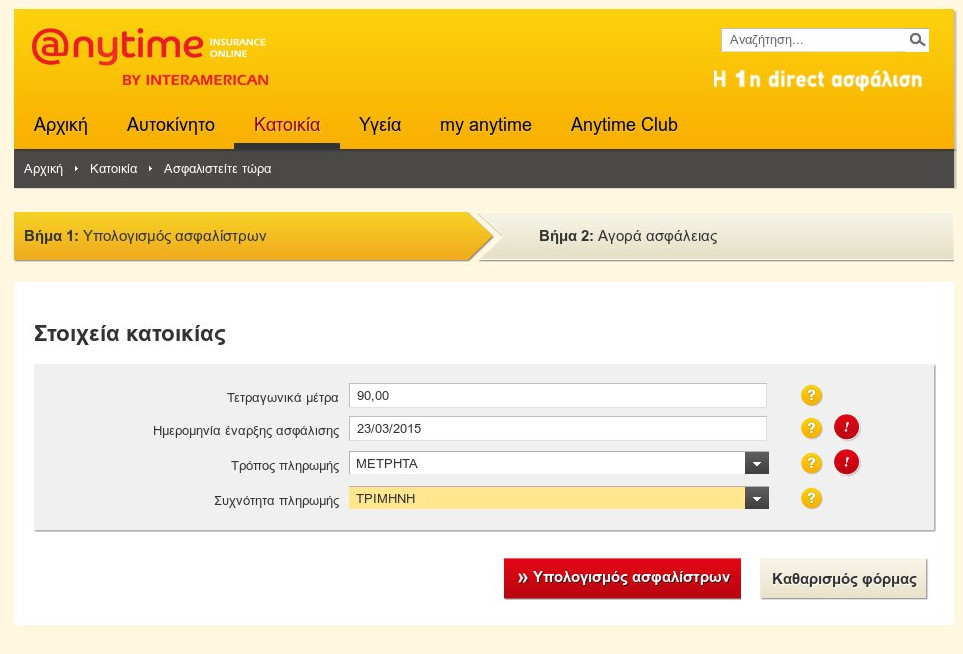 Ενδεικτικά βάλαμε ότι επιθυμούμε ασφάλεια για ένα σπίτι 90 τμ