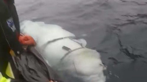 Η λευκή φάλαινα beluga εντοπίστηκε από Νορβηγούς ψαράδες στα ανοιχτά του χωριού Ίνγκα, την περασμένη εβδομάδα. «Πήγαμε να ανεβάσουμε τα δίχτυα μας, όταν πλησίασε στη βάρκα μας η λευκή φάλαινα. Κολύμπησε κατά πάνω μας και πλησίασε πολύ. Τότε διακρίναμε ότι είχε μία συσκευή πάνω της», δήλωσε ένας από τους ψαράδες.