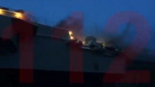 Μια πηγή δήλωσε στο πρακτορείο ειδήσεων TASS πως η πυρκαγιά ξεκίνησε από το πάνω κατάστρωμα και πως πυκνός μαύρος καπνός υψώνεται από το πλοίο.