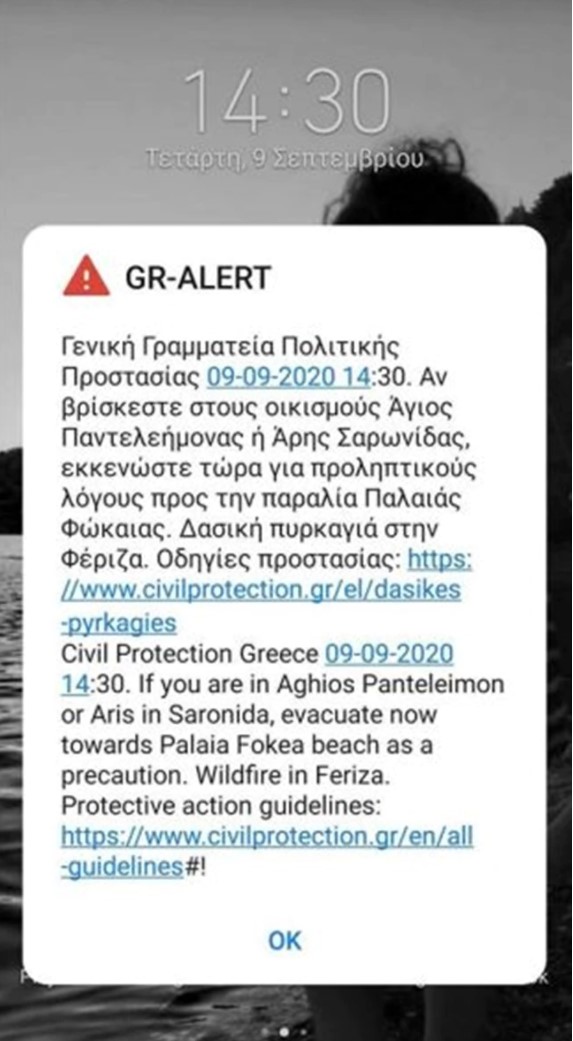 Σε μήνυμα που εστάλη σε κατοίκους, η Γενική Γραμματεία τούς καλεί να εκκενώσουν ΤΩΡΑ τους παραπάνω οικισμούς για προληπτικούς λόγους και να κατευθυνθεί προς την παραλία Παλαιάς Φώκαιας.