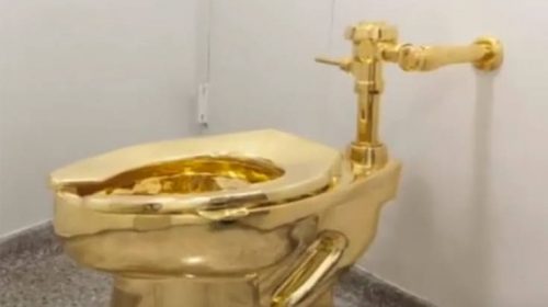 Η 18 καρατίων χρυσή λεκάνη (η οποία είναι απολύτως λειτουργική) περιλαμβανόταν στην έκθεση που ήταν αφιερωμένη στον Μαουρίτσιο Κατελάν και θα διαρκέσει μέχρι τις 27 Οκτωβρίου.