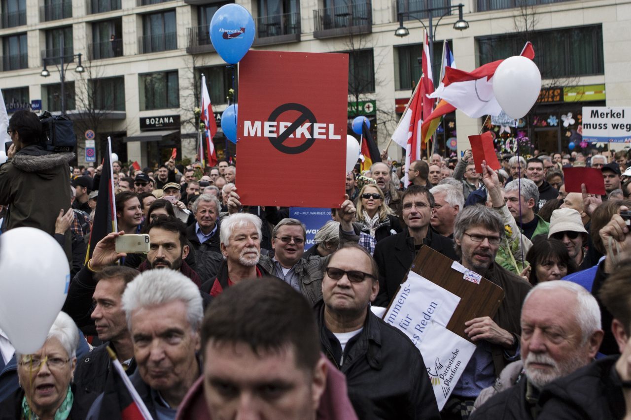 Χθες Σάββατο, περίπου 5.000 υποστηρικτές του AfD διαδήλωσαν κατά της πολιτικής ασύλου της Μέρκελ κρατώντας πλακάτ με το σύνθημα “Το άσυλο έχει τα όριά του. Κόκκινη κάρτα στη Μέρκελ”.