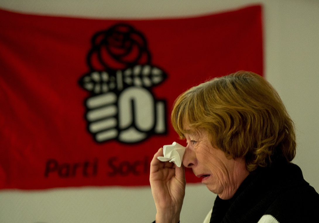 Αντίθετα, οι εικόνες από το κυβερνών σοσιαλιστικό κόμμα έδειξαν την απογοήτευση σε όλη την πυραμίδα του PS. Εδώ μια γυναίκα ψηφοφόρος των σοσιαλιστών στην πόλη Λιλ κλαίει μετά την ανακοίνωση των αποτελεσμάτων.