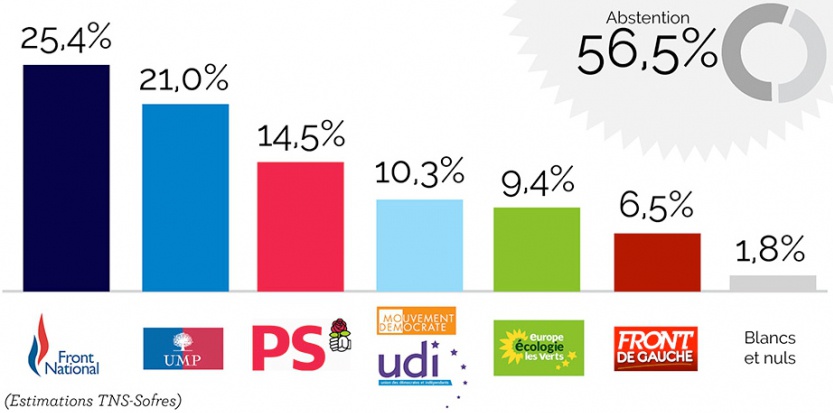 Ευρωεκλογές 2014: Τρίτο το σοσιαλιστικό κόμμα, πίσω από το Δεξιό κόμμα του Σαρκοζί και πίσω από το ακροδεξιό Εθνικό Μέτωπο: