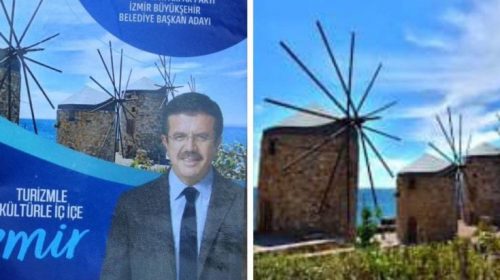 Το φυλλάδιο του Ζεϊμπεκτσί, με τίτλο «Σμύρνη, συνυφασμένη με τον τουρισμό και τον πολιτισμό», περιλαμβάνει μία μεγάλη φωτογραφία με τέσσερις ανεμόμυλους. Μόνο που οι ανεμόμυλοι αυτοί δε βρίσκονται στη Σμύρνη, αλλά στη Χίο, και συγκεκριμένα στα Ταμπάκικα.