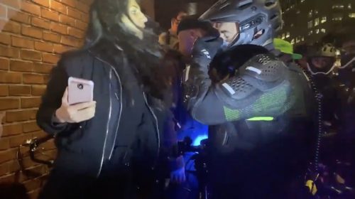 A young woman was arrested after she spat in an officer’s face after screaming, “F–k you, fascist,” tonight in the West Village. pic.twitter.com/cfgVLYJ5pc