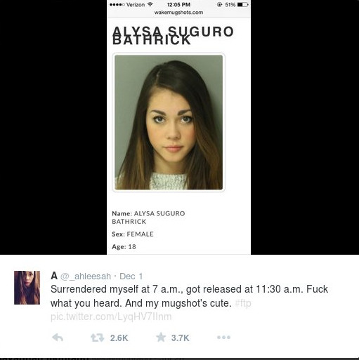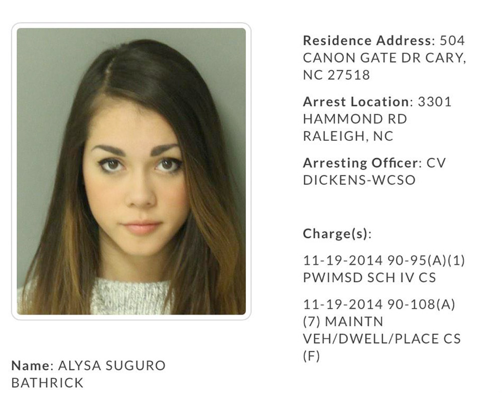 Ο λόγος για την 18χρονη Alysa Suguro Bathrick από τη Βόρεια Καρολίνα των ΗΠΑ η οποία συνελήφθη πριν από μερικές ημέρες για κατοχή ποσότητας μη συνταγογραφούμενων χαπιών.
