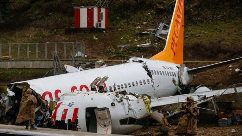 Η άτρακτος του αεροσκάφους Boeing 737 της ιδιωτικής τουρκικής αεροπορικής εταιρείας χαμηλού κόστους Pegasus κόπηκε στα τρία και πήρε φωτιά, σύμφωνα με εικόνες που μεταδόθηκαν από το τηλεοπτικό δίκτυο CNN-Türk.