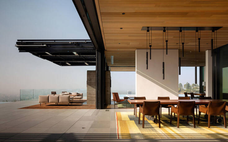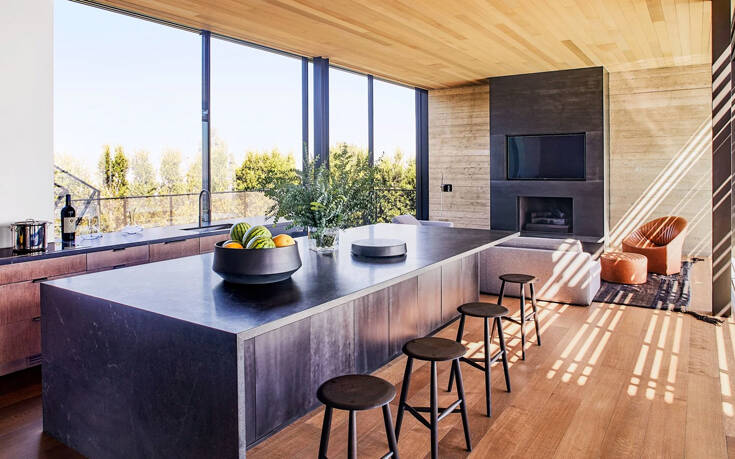 Ο αρχιτέκτονας Tom Kundig έσβησε τα ίχνη μεταξύ εσωτερικού και επιβλητικού εξωτερικού βάζοντας τεράστια ανοίγματα στα πελώρια κενά της κατασκευής από χάλυβα και τσιμέντο.