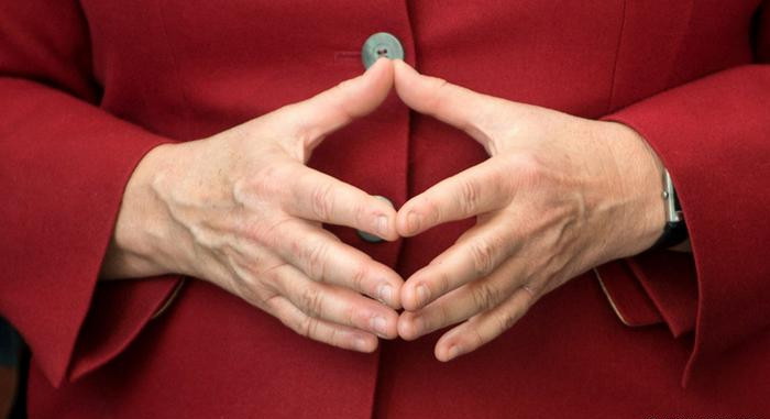 Ισως να μη συλλάβουμε ποτέ την Ανγκελα Μέρκελ να κάνει αυτή τη χειρονομία, αν μη τι άλλο επειδή τα χέρια της είναι πάντα σε συγκεκριμένη στάση, κοντά στο σώμα της. Εχει βρει την απάντηση στο μεγάλο ερώτημα: τι να κάνω με αυτά τα χέρια όταν μιλάω. Αυτή η δυναμική πόζα είναι πιο αναγνωρίσιμη από κάθε φράση που μπορεί να έχει ξεστομίσει.