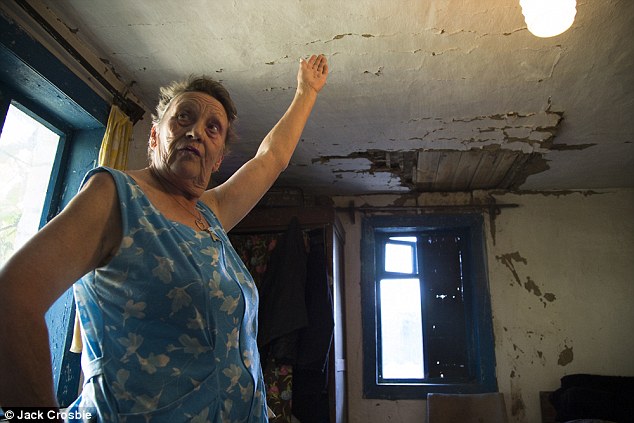 Μέσα στην ετοιμόρροπη κουζίνα της, η τρύπα στην οροφή υπάρχει ακόμα. Κάτω από τις κατσαρόλες, τα τηγάνια και τα άδεια ράφια, το μόνο που απομένει να θυμίζει το περιστατικό είναι μία λευκή κηλίδα χλωρίου.