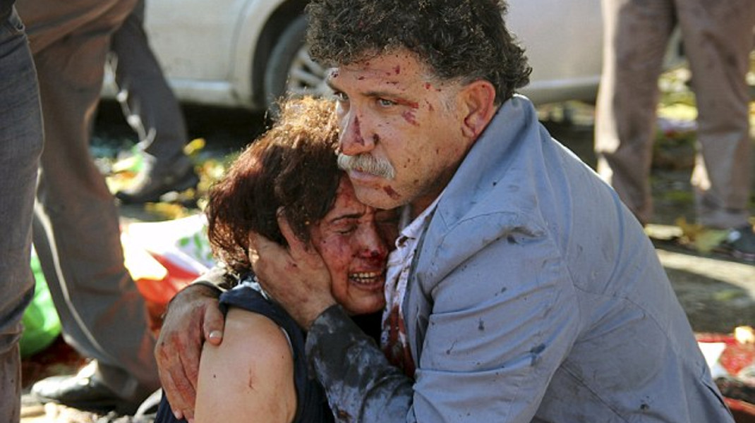 Εικόνες από τον τόπο της τραγωδίας στην Αγκυρα, μετά τη διπλή έκρηξη που έκαναν το γύρο του κόσμου, ήταν πολλές. Ολες τους αποτύπωναν το σκηνικό φρίκης που επικρατούσε στην τουρκική πρωτεύουσα. Μια από αυτές, όμως ξεχώρισε, έγινε η φωτογραφία που σφράγισε την τραγωδία. Απεικόνιζε έναν άνδρα, με αίματα στο πρόσωπο, μισοσκισμένο παντελόνι, να κρατά στην αγκαλιά του μια γυναίκα. Ο Ιτσετίν Τσεβίκ που στη διπλή έκρηξη του Σαββάτου έχασε την κόρη του και την αδελφή του είναι το πρόσωπο της τραγωδίας που εκτιλύχθηκε το μεσημέρι του Σαββάτου στην τουρκική πρωτεύουσα.