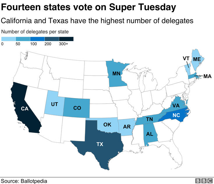 Τη Σούπερ Τρίτη αναδεικνύονται πάνω από 1.300 από τους 1991 αντιπροσώπους που απαιτούνται για να λάβει κάποιος το χρίσμα των Δημοκρατικών.