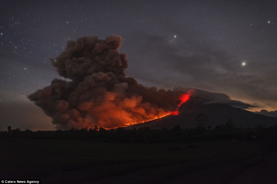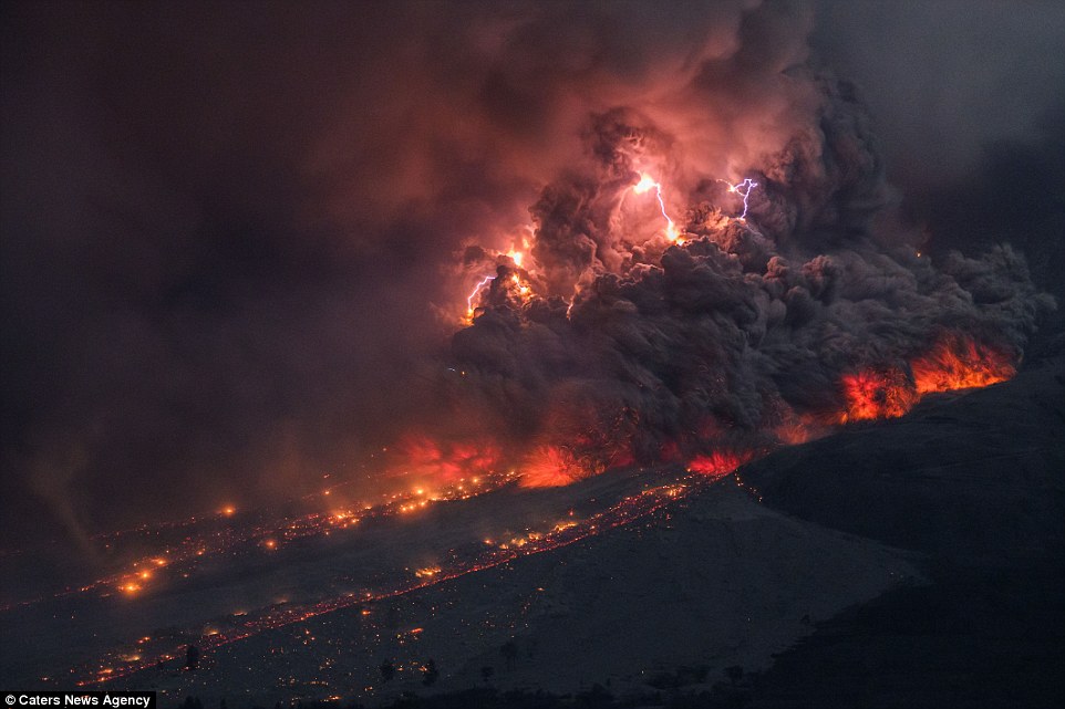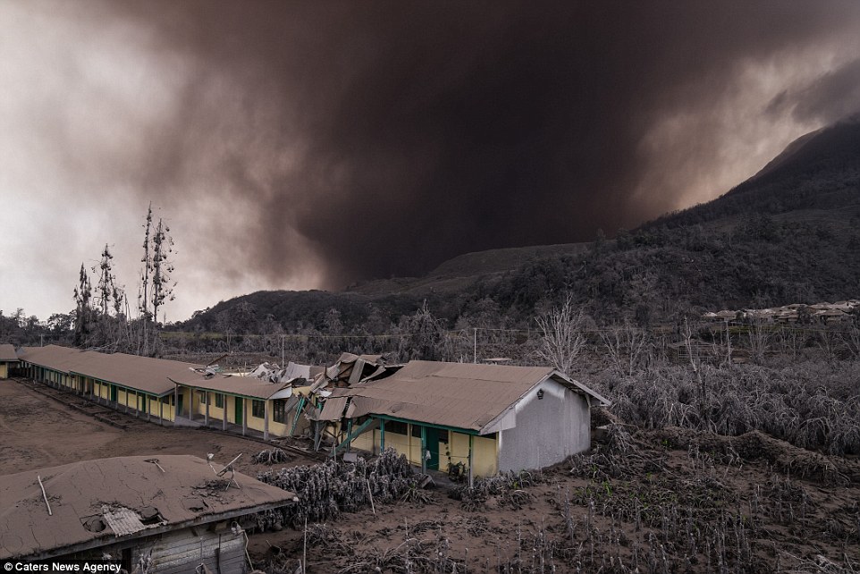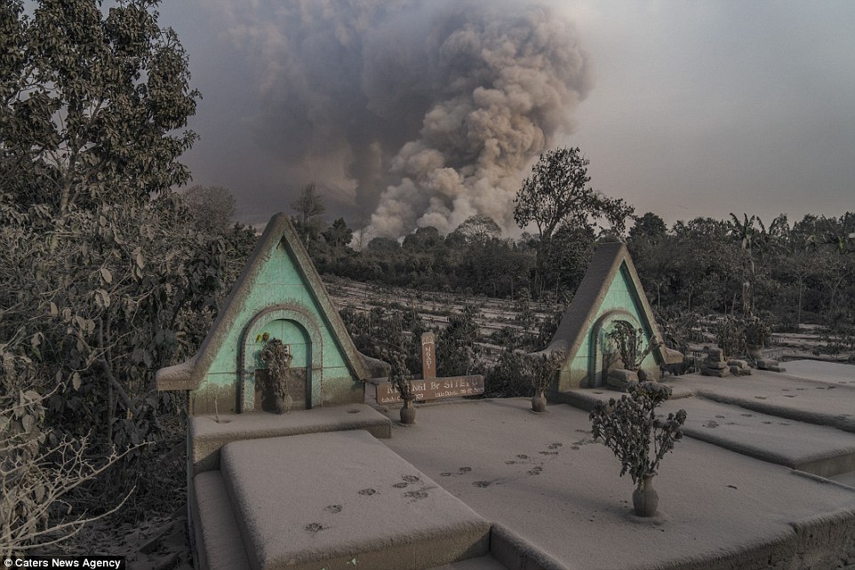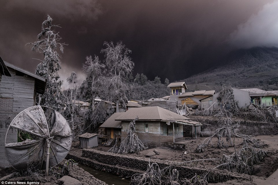 Πρόκειται για τον φωτογράφο Martin Rietze και το ηφαίστειο που βρίσκεται στην Σουμάτρα, νησί της Ινδονησίας που ανήκει στις Νήσους Σούνδες. Ο φωτογράφος κατάφερε να αποθανατίσει τις συγκλονιστικές εικόνες τις έκρηξης, αλλά και το χωριό κοντά στο ηφαίστειο μετά την έκρηξη, που ήταν καλυμμένο με στάχτες.