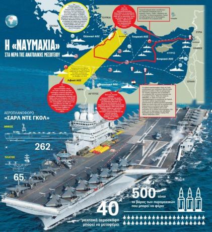 Τα γαλλικό αεροπλανοφόρο «Σαρλ Ντε Γκολ», συνοδευόμενο από τουλάχιστον άλλα έξι πλοία, φρόντισε να στείλει το δικό μήνυμα προς την Τουρκία, περνώντας από το Οικόπεδο 8 της κυπριακής ΑΟΖ, σε κοντινή απόσταση από το τουρκικό Yavuz. Μέσα στις επόμενες εβδομάδες, το «Σαρλ Ντε Γκολ» είναι προγραμματισμένο να καταπλεύσει στη Λεμεσό, ενώ από το γαλλικό αεροπλανοφόρο απονηώνονται και γαλλικά μαχητικά αεροσκάφη Rafale που πετούν πάνω από την κυπριακή ΑΟΖ. Σημειώνεται ότι σε ελληνικά νερά (Αιγαίο, Πειραιάς, Σκύρος) βρέθηκε από τα τέλη Ιανουαρίου και το γαλλικό ελικοπτεροφόρο «Dixmude» για να πάρει μέρος στην πολυεθνική διακλαδική άσκηση Ελλάδας-Γαλλίας-ΗΠΑ «Μέγας Αλέξανδρος 2020».