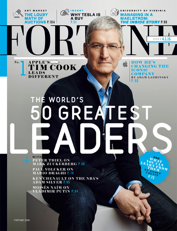 Σύμφωνα με την κατάταξη του «Fortune» για το 2015 o επικεφαλής της Apple Τιμ Κουκ, βρίσκεται στην πρώτη θέση με τους ισχυρότερους ηγέτες του κόσμου. Από ένα φτωχόπαιδο που γεννήθηκε στην Αλαμπάμα ο Κουκ βρέθηκε στην κορυφή της μεγαλύτερης εταιρείας στον κόσμο.