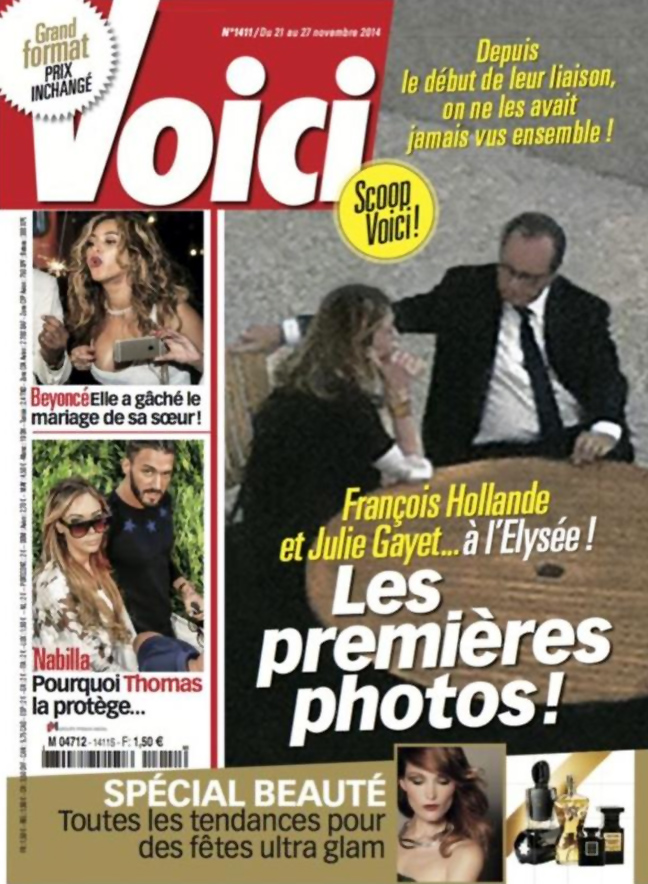 Το εξώφυλλο εμφανίζεται μία στιγμή κατά την οποία η πρώην σύντροφος του Ολάντ, Βαλερί Τριερβελλέ, ετοιμάζεται να δώσει συνεντεύξεις σε διάφορα αγγλόφωνα δίκτυα.