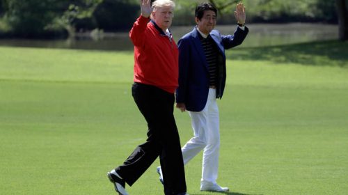 Στη διάρκεια του Σαββατοκύριακου, ο Αμερικανός πρόεδρος έπαιξε γκολφ με τον Ιάπωνα πρωθυπουργό Σίνζο Άμπε και παρακολούθησαν μαζί τουρνουά γκολφ.