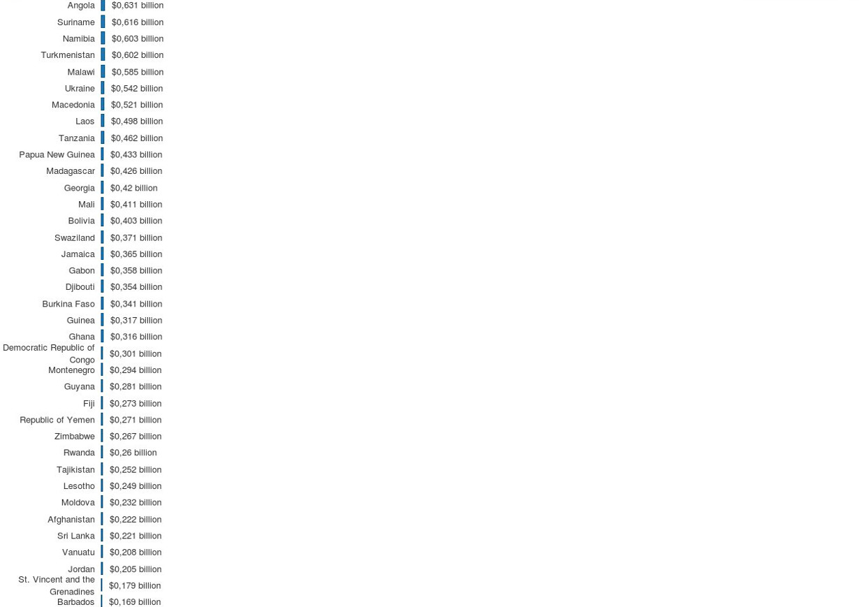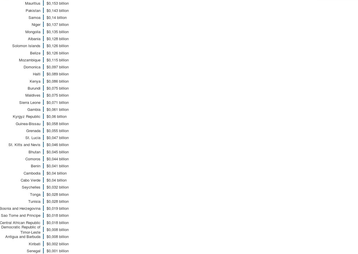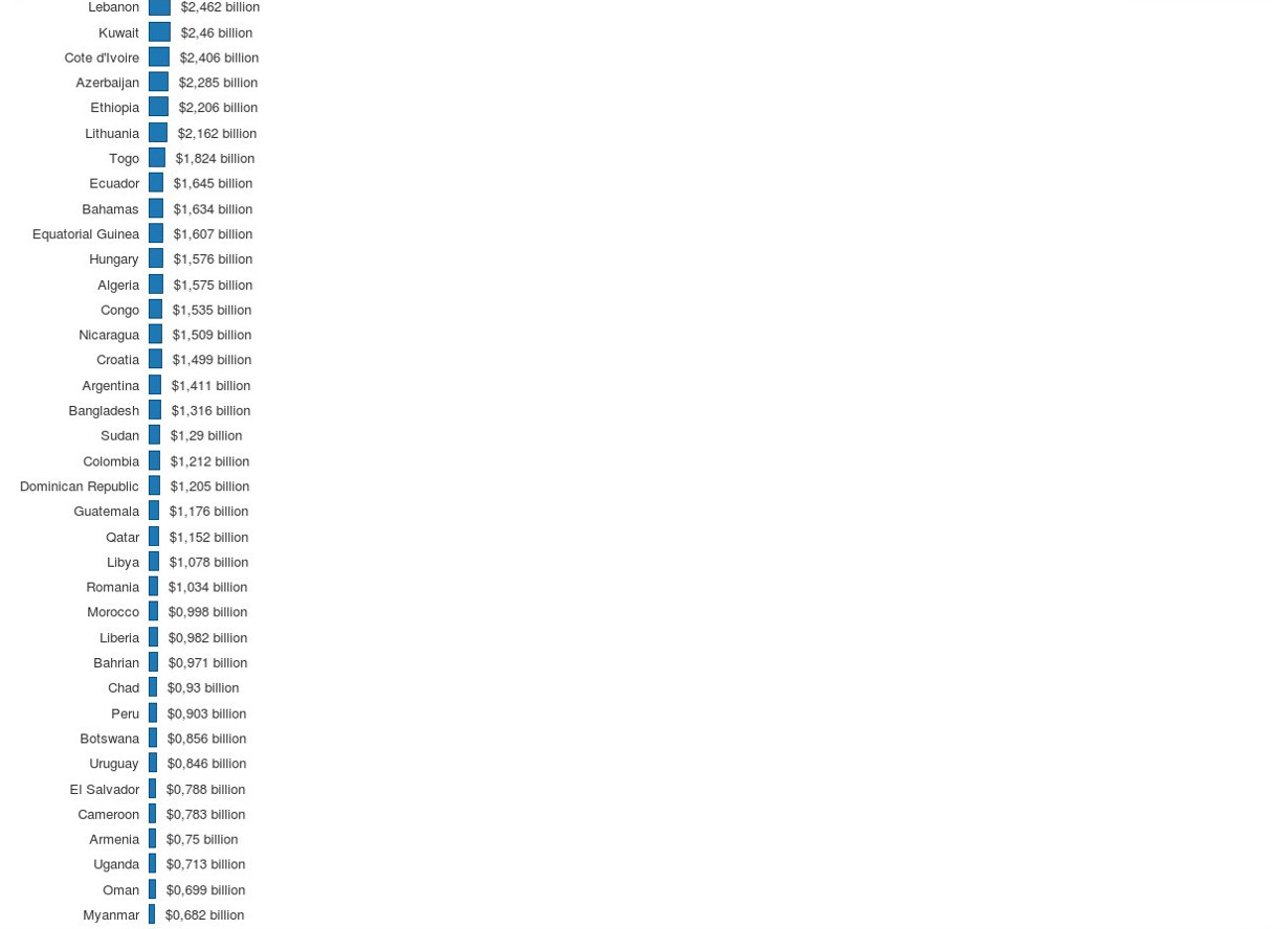 Για να αντιληφθεί κανείς τα μεγέθη, αρκεί να αναλογιστεί ότι περίπου 145 αναπτυσσόμενες χώρες σε όλο τον κόσμο διοχέτευσαν κατά μέσο όρο από 1 εκατομμύριο έως 125 δισ. δολάρια στο διάστημα 2003-2012. Η πιο απλά, να κοιτάξει αυτόν τον πίνακα.