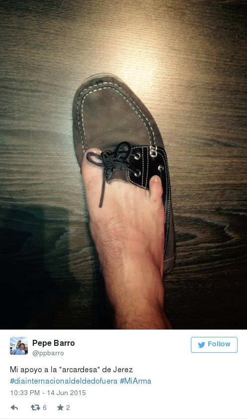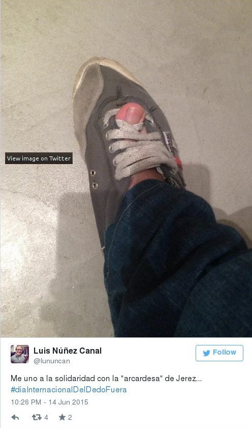 Σε αυτή η Μάμεν Σάντσεθ φαίνεται να στέκεται όρθια και χαμογελαστή, τα δύο μικρά δάχτυλα των ποδιών της όμως είναι αυτά που κλέβουν την παράσταση καθώς προεξέχουν από τα πέδιλα.