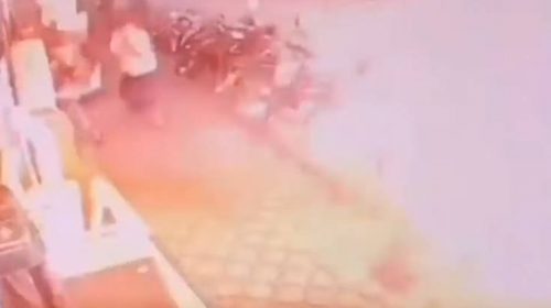 Το βίντεο καταγράφηκε από μια κάμερα από κατάστημα της περιοχής στην οποία σημειώθηκε το ατύχημα στη βορειοανατολική Ταϊλάνδη.
