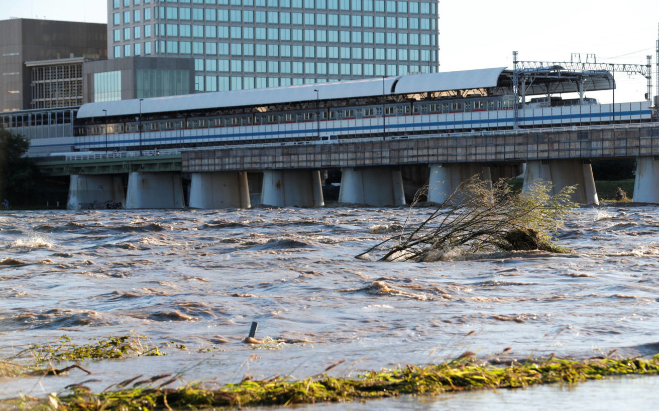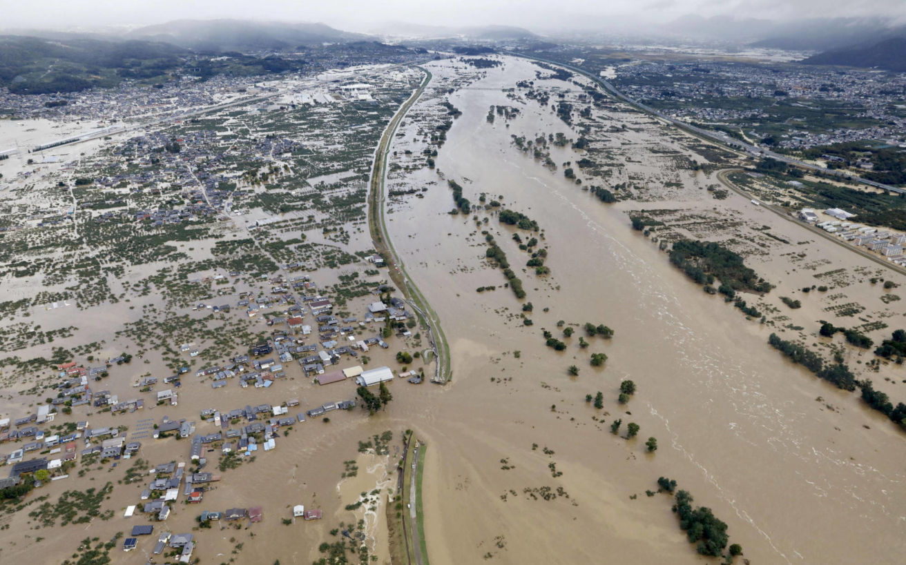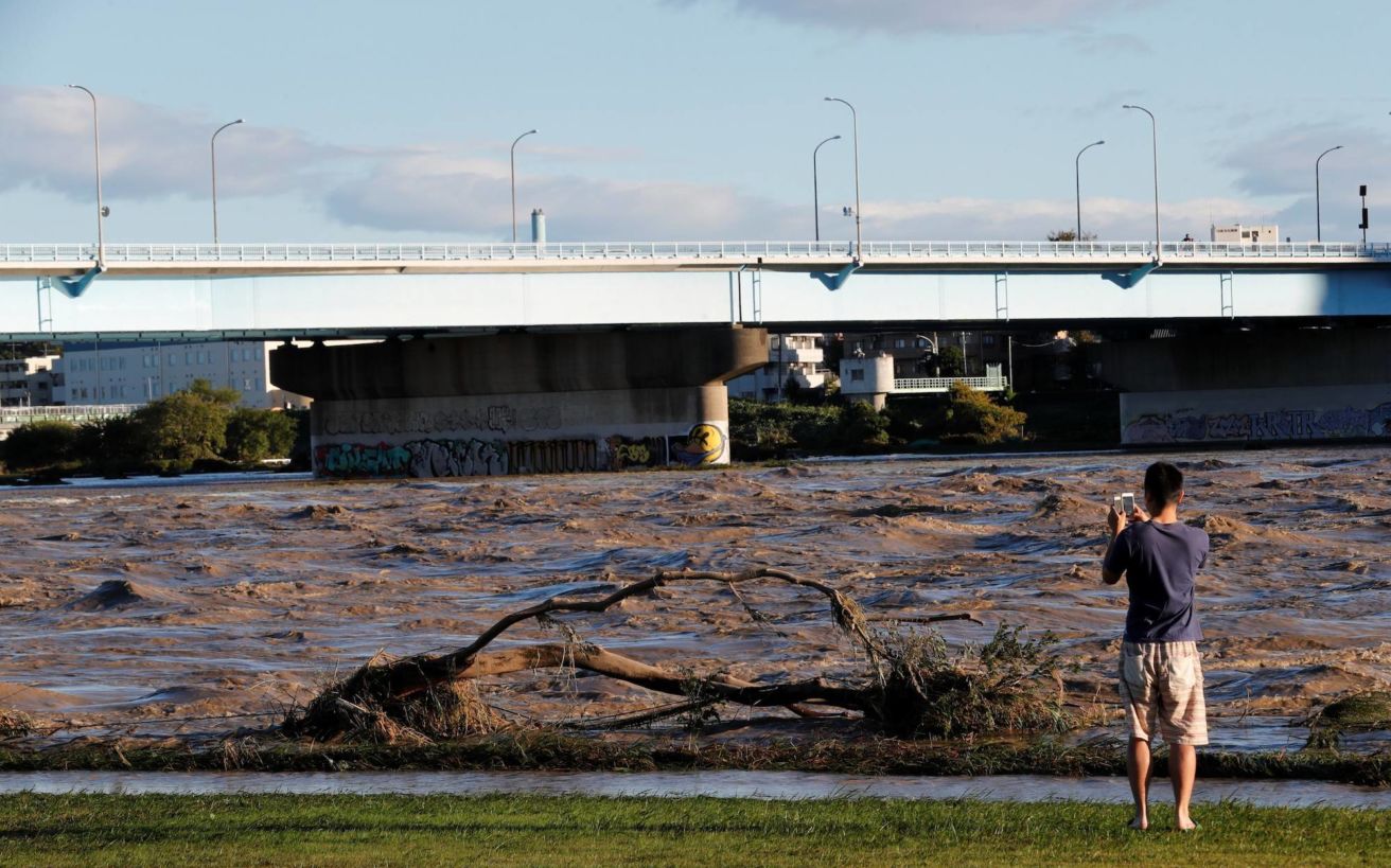 Σπίτια βυθισμένα στα νερά, κατολισθήσεις, χείμαρροι: ο τυφώνας έφερε σφοδρές βροχοπτώσεις, ποσότητες κατακρήμνισης ρεκόρ, σπέρνοντας την καταστροφή τη νύχτα του Σαββάτου προς Κυριακή στην κεντρική και στην ανατολική Ιαπωνία.