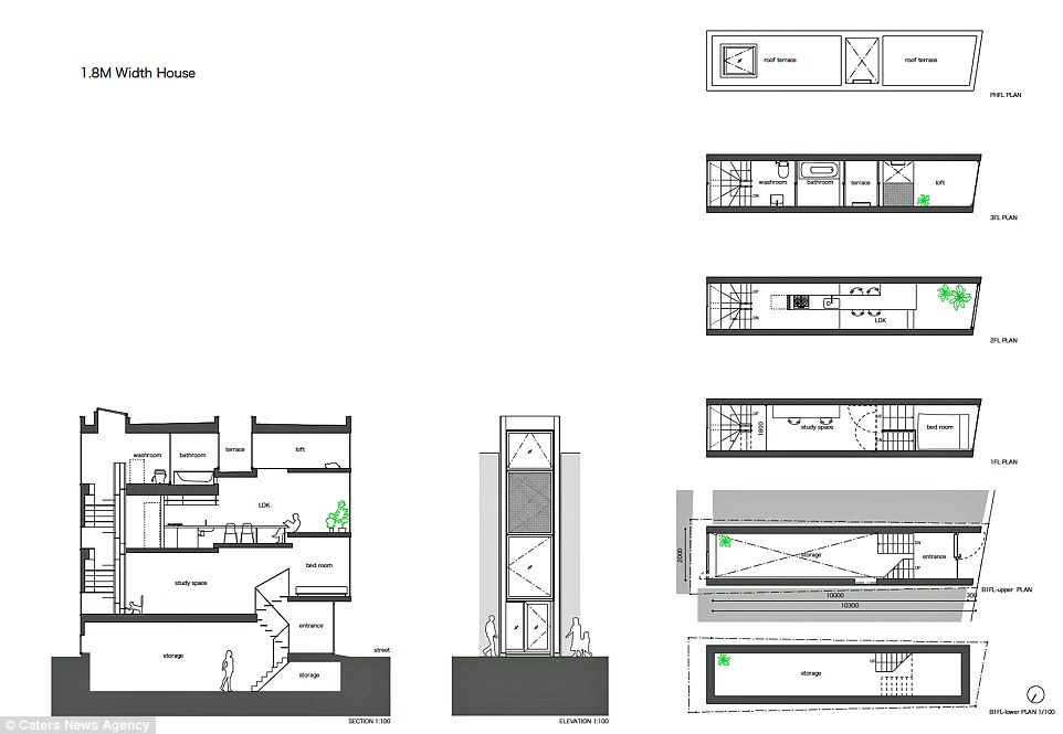Χτίστηκε μεταξύ 2010 και 2012 από τους σχεδιαστές και τους κατασκευαστές και της YUUA Architects και έχει 2,5 μέτρα πλάτος και 11 μέτρα ύψος.