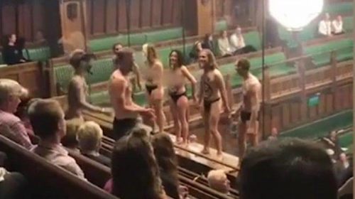 Μια ομάδα ημίγυμνων διαδηλωτών κατά της κλιματικής αλλαγής προκάλεσε αναστάτωση σήμερα στο βρετανικό κοινοβούλιο, καθώς επιδείκνυαν τα γυμνά τους κορμιά, την ώρα που οι βουλευτές προσπαθούσαν, μάταια, να επικεντρωθούν στη συζήτηση που βρισκόταν εκείνη την ώρα σε εξέλιξη για το Brexit.
