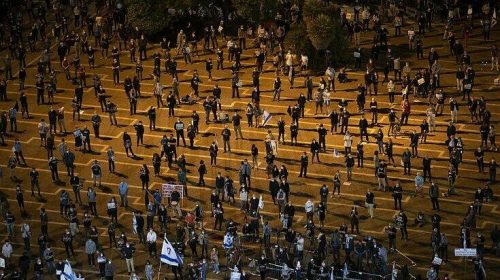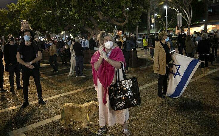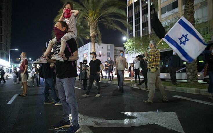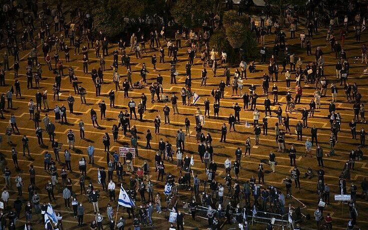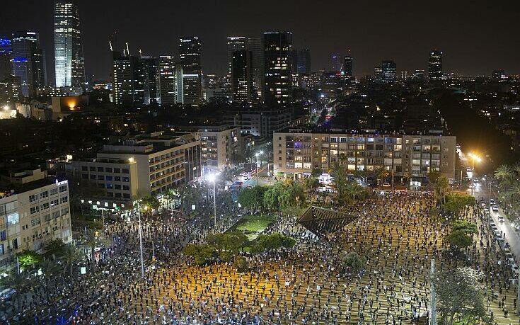 Πάνω από 2000 άτομα διαδήλωσαν στο Τελ Αβίβ, μετά από κινητοποίηση μέσω Facebook από το λεγόμενο κίνημα των «μαύρων σημαιών» και συγκεντρώθηκαν στην πλατεία Yitzhak-Rabin.