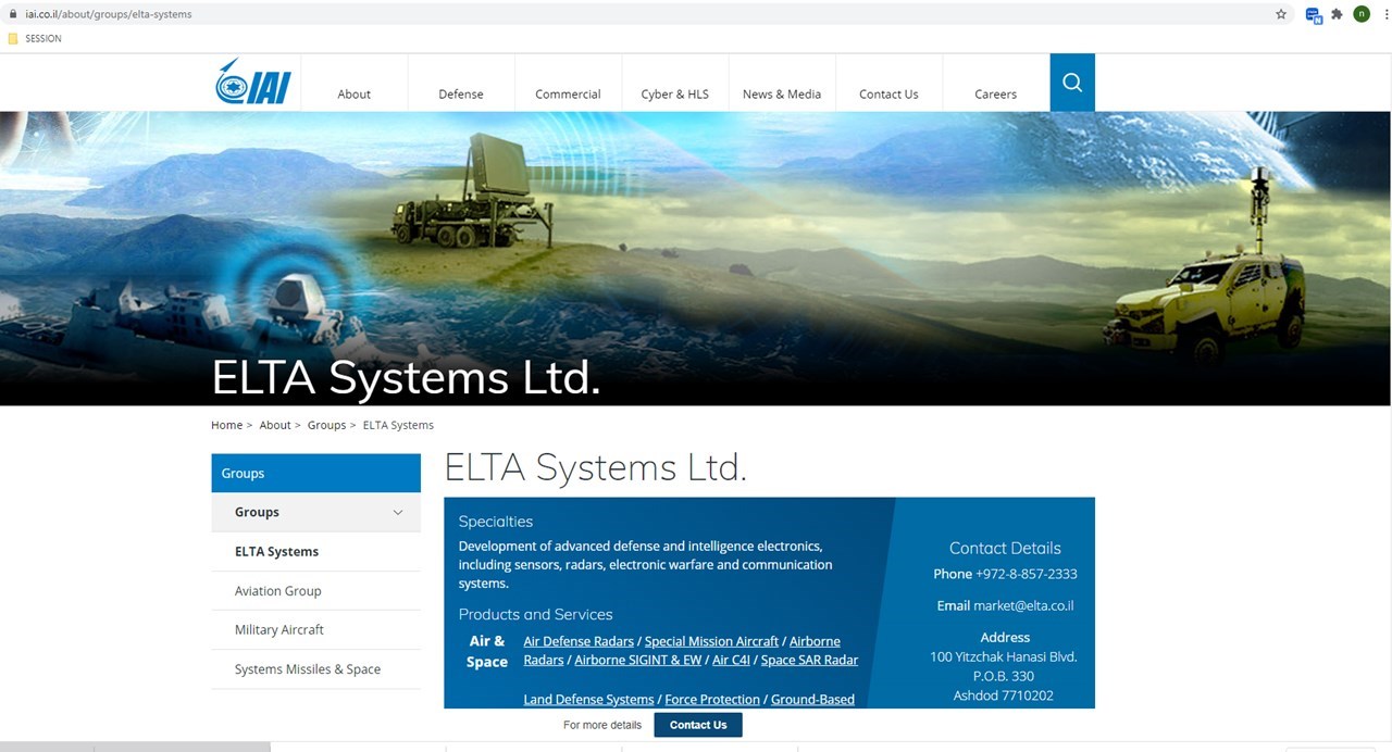 Όπως φαίνεται από την ιστοσελίδα της ΙΑΙ Elta Electronics πρόκεται για εταιρεία που ειδικεύεται σε ραντάρ και ηλεκτρονικά συστήματα παρακολούθησης.