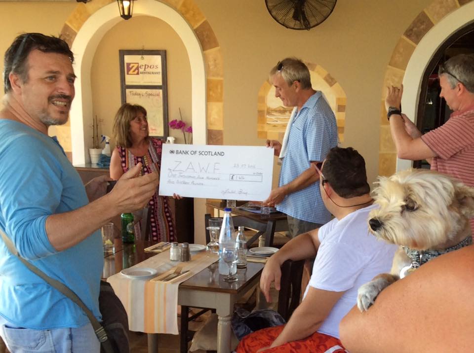 Παρά τις οικονομικές δυσκολίες, μια Βρετανή, η οποία επισκέπτεται τα τελευταία 10 χρονιά την Ζάκυνθο, ευαισθητοποιήθηκε και συνέλεξε το ποσό των 1.416 λιρών για να να βοηθήσει το Ζακυνθινό όμιλο Μέριμνας Ζώων, ο οποίος φροντίζει τα αδέσποτα στο νησί.